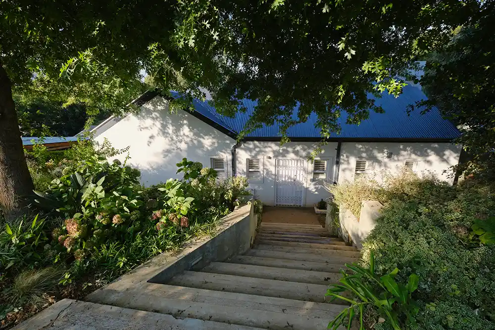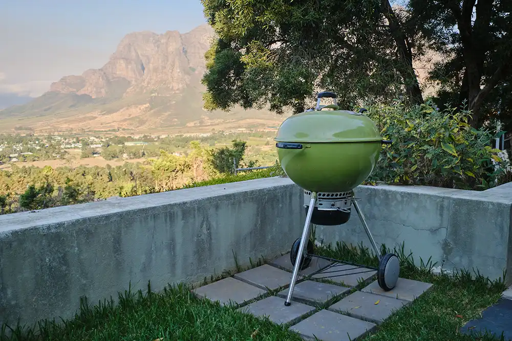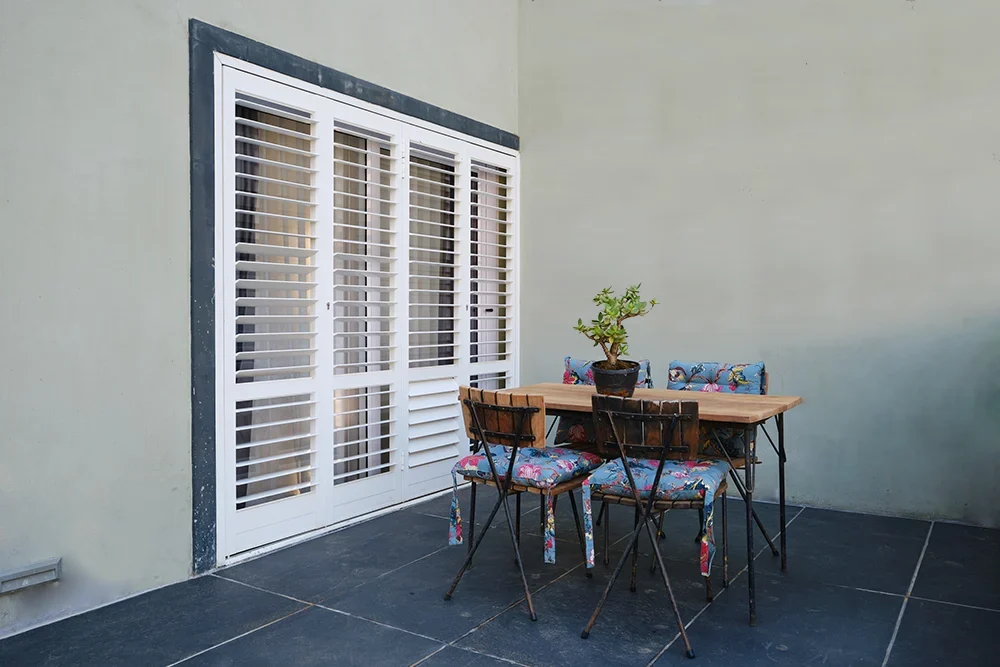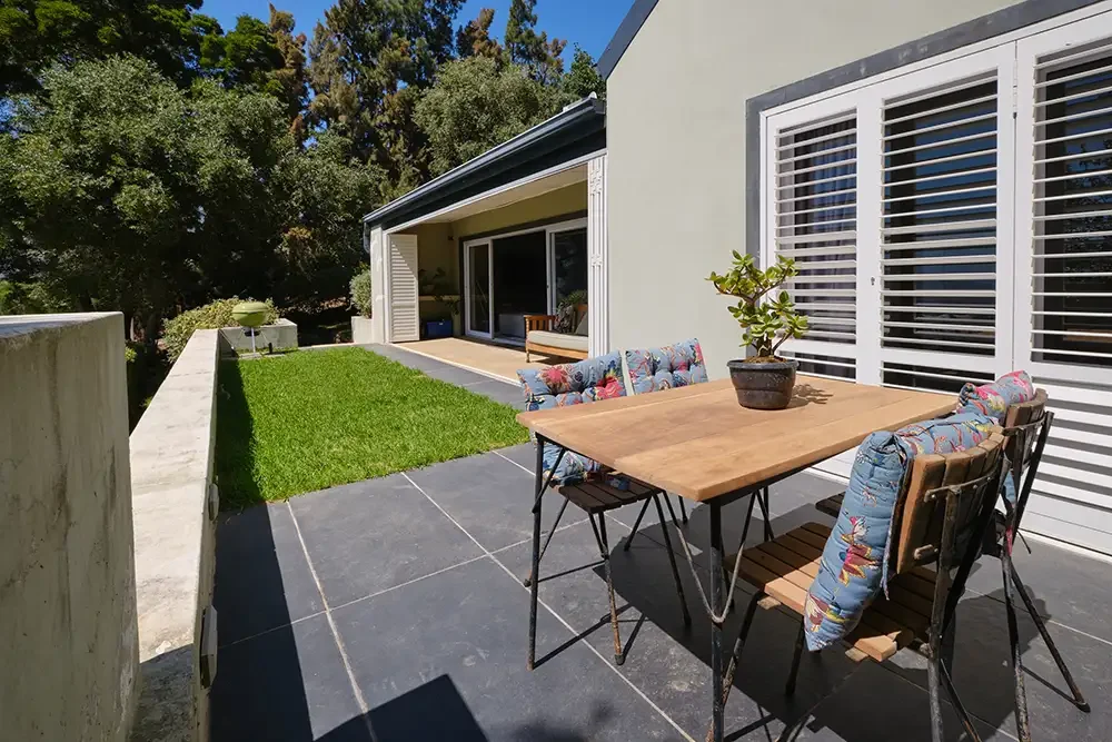 Beautiful large open plan lounge, dining room and kitchen area with enclosed fireplace. An enclosed patio with steps to a separate garden area.
